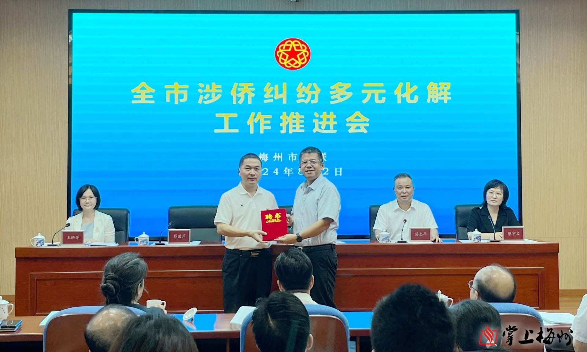掌上梅州讯 8月2日,全市涉侨纠纷多元化解工作推进会在梅州市中级人民法院召开。会议传达学习党的二十届三中全会精神和中国侨联涉侨纠纷多元化解工作推进活动、广东省侨联涉侨纠纷多元化解工作推进活动精神,并为新聘的市侨联法律顾问委员会成员颁发聘书。市委常委、统战部部长崔毅出席会议并讲话。会议由市侨联党组书记、主席汤志平主持。市侨联法顾委主任、嘉应学院政法学院院长蔡国芹代表市侨联法顾委讲话。