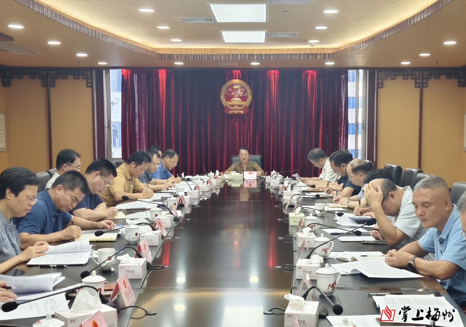 掌上梅州讯 8月9日,受市委书记,市人大常委会党组书记、主任马正勇委托,市人大常委会党组副书记、副主任蓝伟东主持召开市人大常委会党组会议和党组理论学习中心组专题学习会。市人大常委会党组成员、副主任黄立强、张达宏、刘锐清、谢文威,市人大常委会党组成员、秘书长曾小喜出席会议。