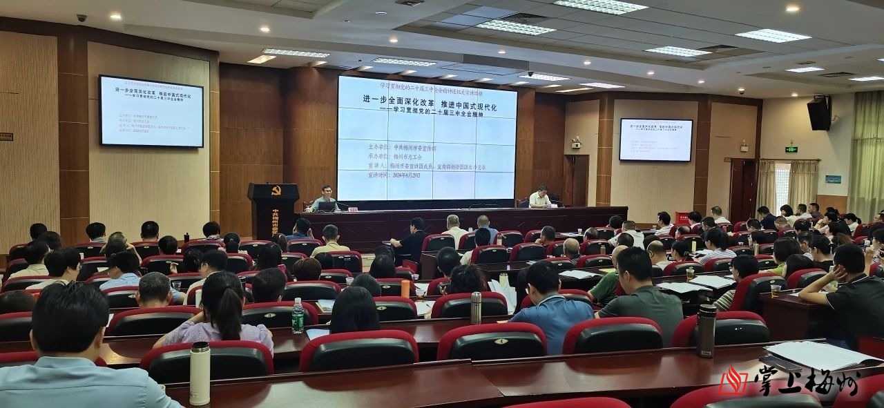 掌上梅州讯 8月29日,梅州市总工会在中共梅州市委党校组织开展工会干部“进一步全面深化改革 推进中国式现代化——学习贯彻党的二十届三中全会精神”专题宣讲。梅州市总工会党组副书记、常务副主席刘仁忠,市总工会党组成员,副主席刘素芬、谢爱民等140名工会干部参加学习。会议由刘仁忠主持。