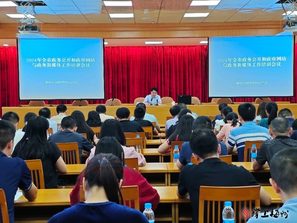 掌上梅州讯 为认真贯彻落实国家和省关于全面推进政务公开工作的部署要求,进一步提升全市政务公开、政府网站与政务新媒体工作的能力和水平,9月26日下午,市政府办公室召开2024年全市政务公开和政府网站与政务新媒体工作培训会议,各县(市、区)人民政府办公室和市直部门负责人员共计90多人参加了培训。