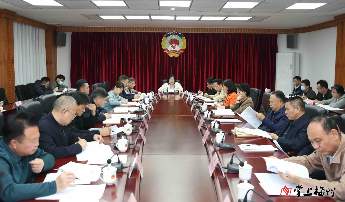 掌上梅州讯 1月23日下午,市政协党组书记、主席杨朝晖主持召开市政协党组(扩大)会议暨八届第三十七次主席会议,传达学习贯彻习近平总书记近期重要讲话精神,传达学习省政协十三届三次会议精神。市政协党组副书记、副主席曾祥海,副主席韩小林、马志元、陈元星、李利平,党组成员、副主席蔡雪嫦、曾碧玉,党组成员陈志宁、梁维,党组成员、秘书长王健参加会议。