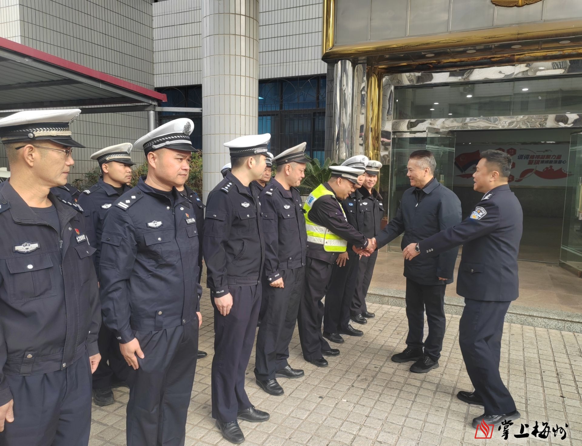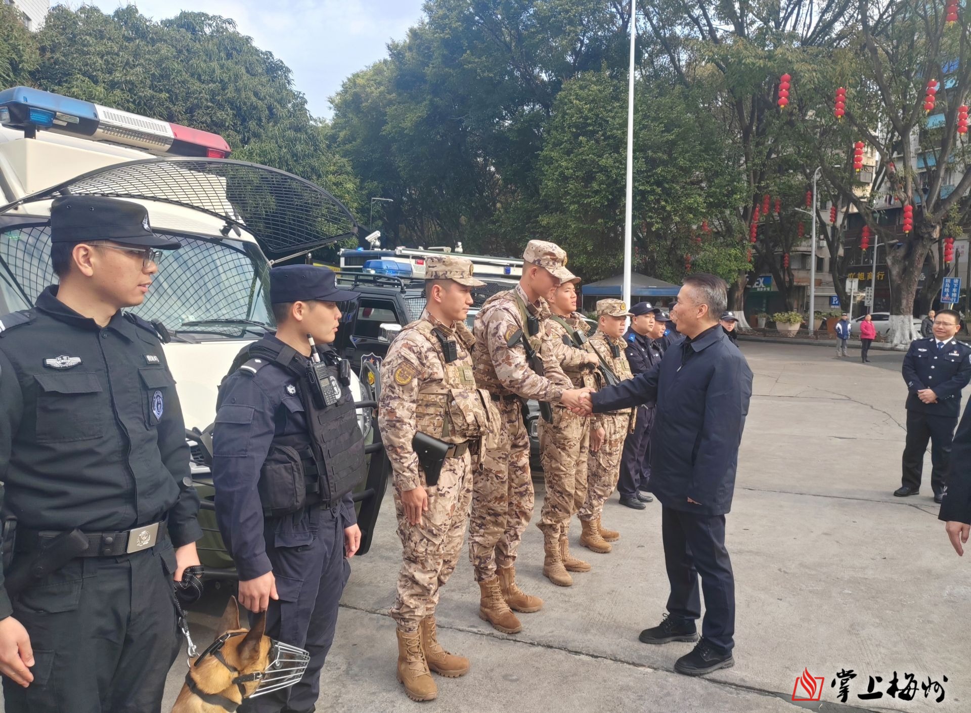 在市公安局,周政认真听取梅县区、平远县、五华县公安局关于春节安保维稳工作开展情况汇报。随后,周政前往市公安局梅江分局新中派出所、梅江三路市政府执勤点、市公安局交警支队直属大队,和正在值班执勤的民辅警一一握手、亲切交谈,向他们致以新春的问候和诚挚祝福。