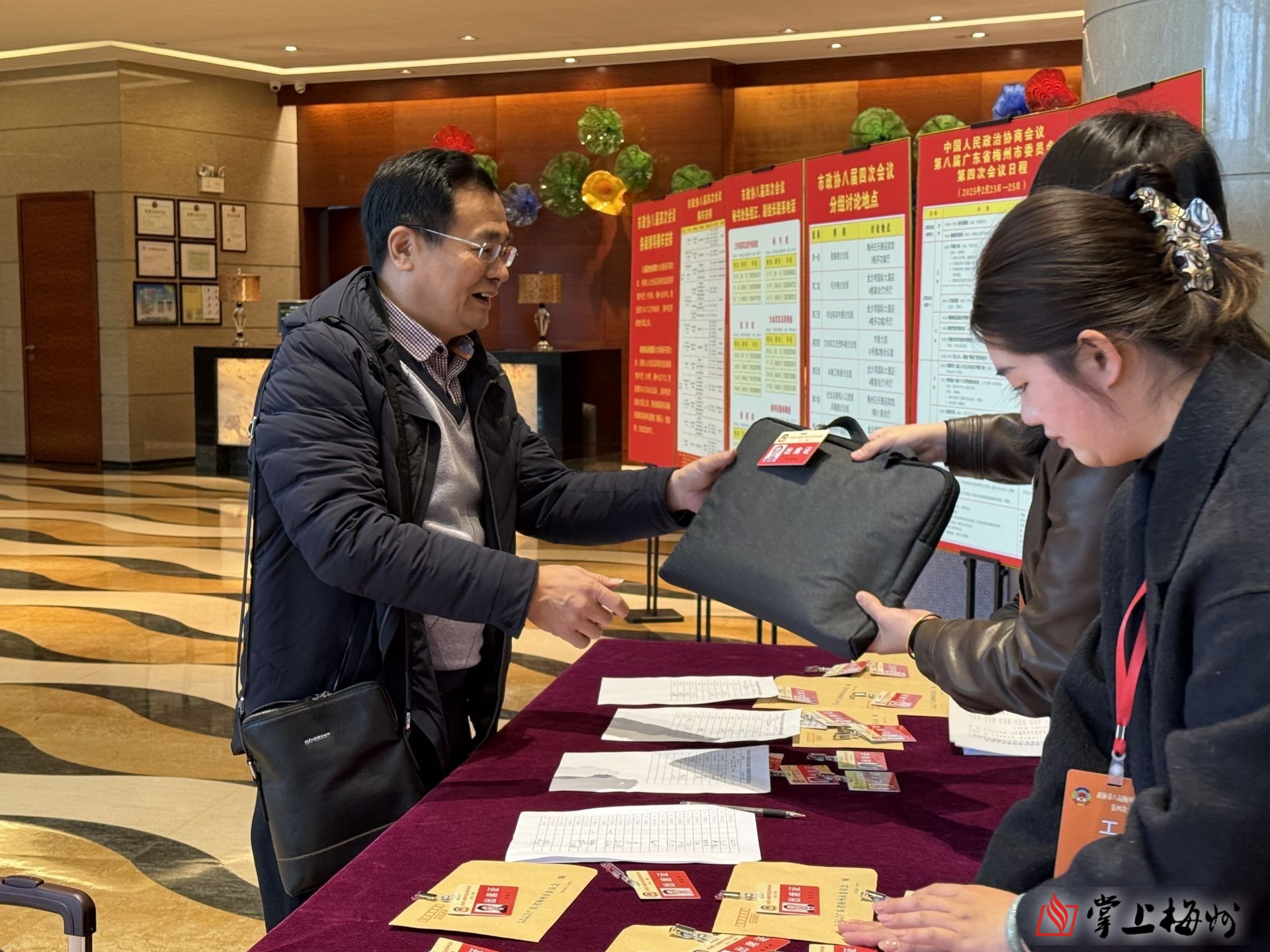 掌上梅州讯 梅州市政协八届四次会议将于2月24日开幕。2月23日下午,出席本次大会的政协委员们陆续向大会报到。委员们怀揣为民发声谋福祉的拳拳之心,带着推动高质量发展的真言良策,以饱满的热情迎接大会的召开。