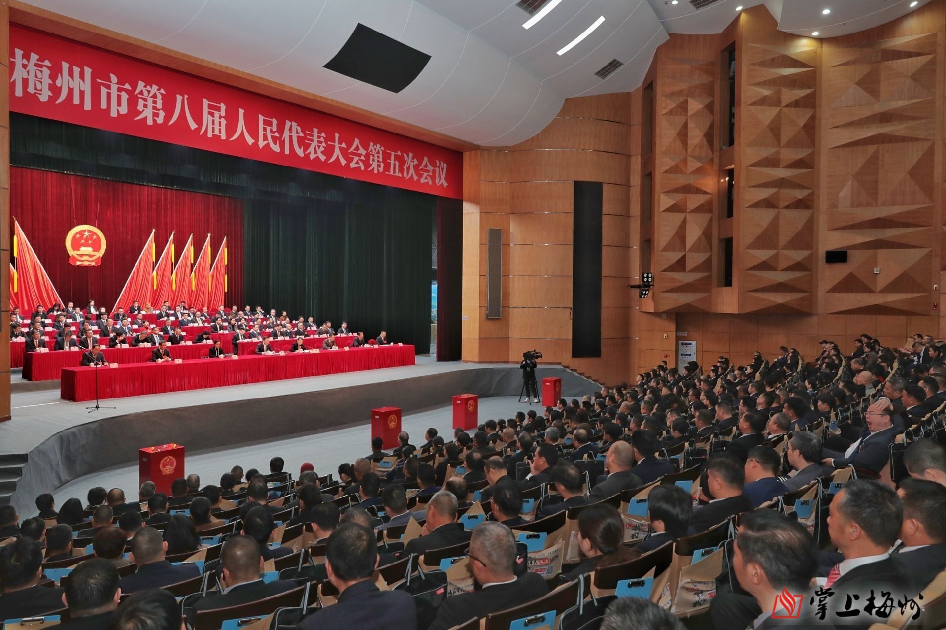 掌上梅州讯 2月26日下午,梅州市第八届人民代表大会第五次会议在梅城客家艺术中心举行第三次全体会议,并在圆满完成各项议程后胜利闭幕。市委书记、市人大常委会主任马正勇,市委副书记、市长王晖,市政协主席杨朝晖出席会议。