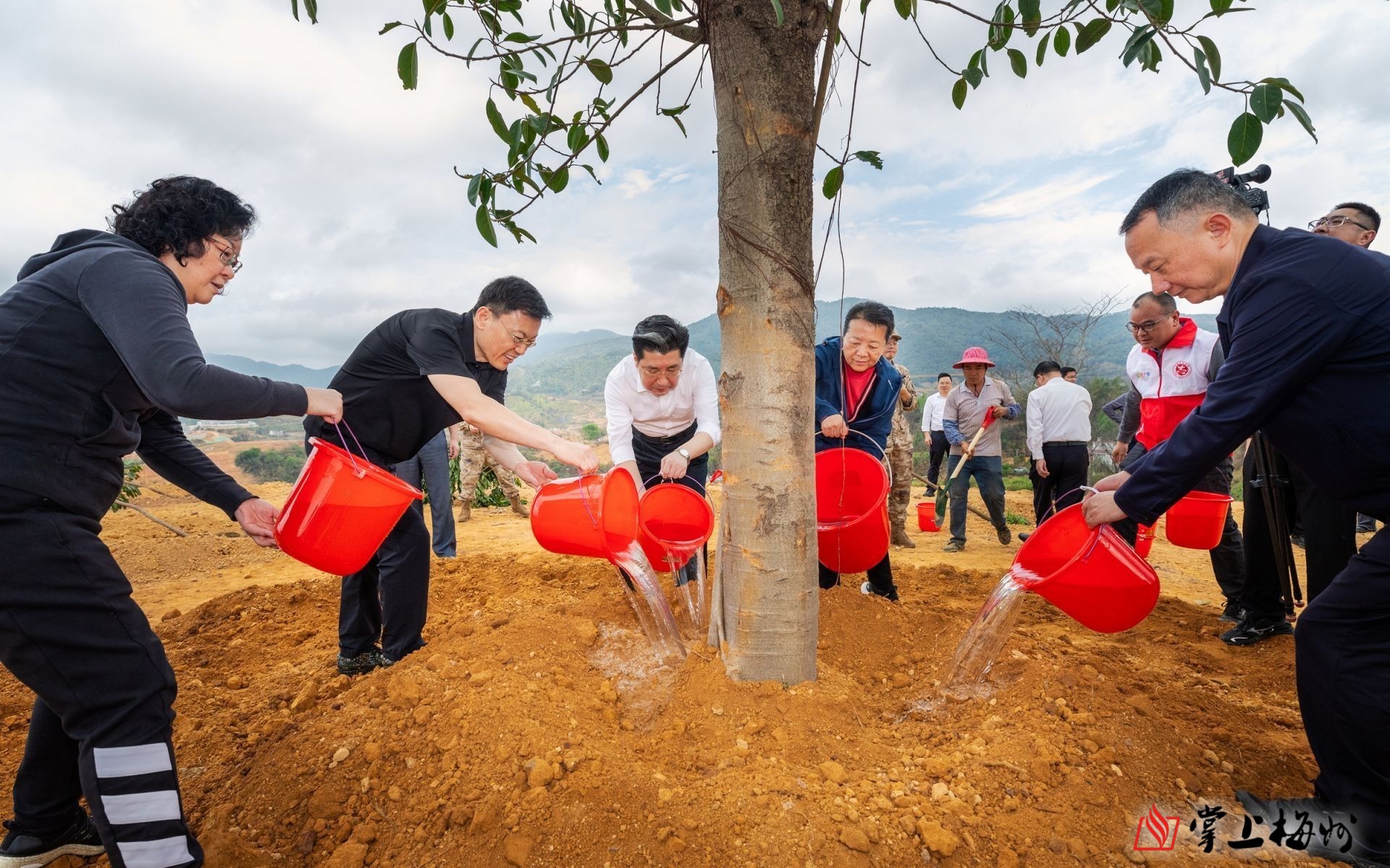 掌上梅州讯 春风催新绿,植树正当时。3月14日上午,以“我为全运种棵树”为主题的全省推进绿美广东生态建设义务植树活动在21个地市同步开展。梅州市委书记、市人大常委会主任马正勇,梅州市委副书记、市长王晖,梅州市政协主席杨朝晖等干部群众和驻梅有关部队官兵来到兴宁市黄槐镇四望嶂绿美广东生态建设示范点参加植树活动,以实际行动贯彻习近平生态文明思想,推进绿美梅州生态建设,号召全市上下踊跃参与“廿林添绿”大行动、“1+3”全民爱绿植绿护绿系列行动,爱绿植绿护绿,掀起全民义务植树“新热潮”。