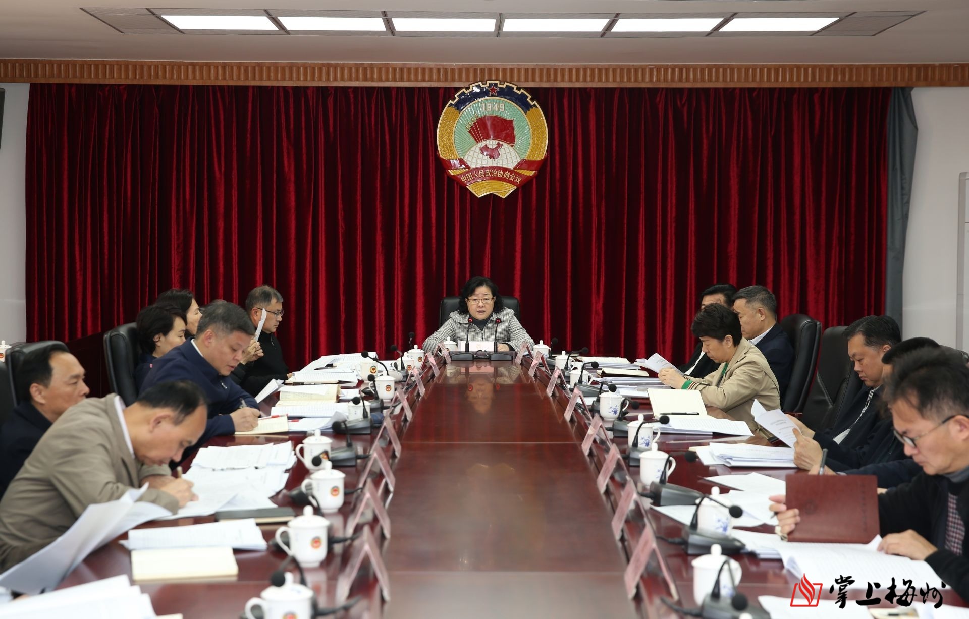 掌上梅州讯 3月19日,市政协党组书记、主席杨朝晖主持召开市政协党组(扩大)会议暨八届第三十九次主席会议,传达学习贯彻习近平总书记近期重要讲话精神及省有关会议精神,研究审议有关事项。市政协党组副书记、副主席曾祥海,副主席韩小林、陈元星、李利平,党组成员、副主席蔡雪嫦、曾碧玉,党组成员陈志宁,党组成员、秘书长王健参加会议。