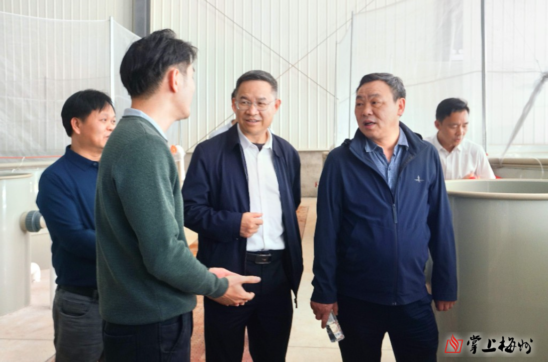 考察组一行前往梅江区长沙镇下罗村,通过听取汇报、实地考察和现场交流等方式,详细了解鸿熙智慧渔业产业园的智能水质检测管理系统、循环水养殖系统及养殖动保仓、产品检测实验室等基础设施设备运行情况等。