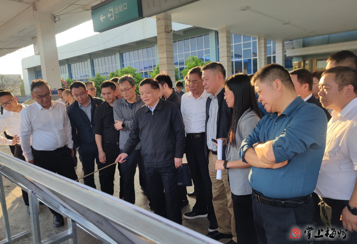 在梅期间,调研组一行先后前往梅州市松棚铁路物流园(梅州国际陆港)、梅州站、梅江特大桥施工现场、梅江区西阳镇筀竹村、平远县众呈硅能科技园、瑞梅铁路平远站(大柘镇黄沙村)等地进行实地考察。随后召开座谈会,听取我市相关工作情况汇报,并与部分市直单位和县(区)有关负责同志,围绕相关议题进行研究讨论。