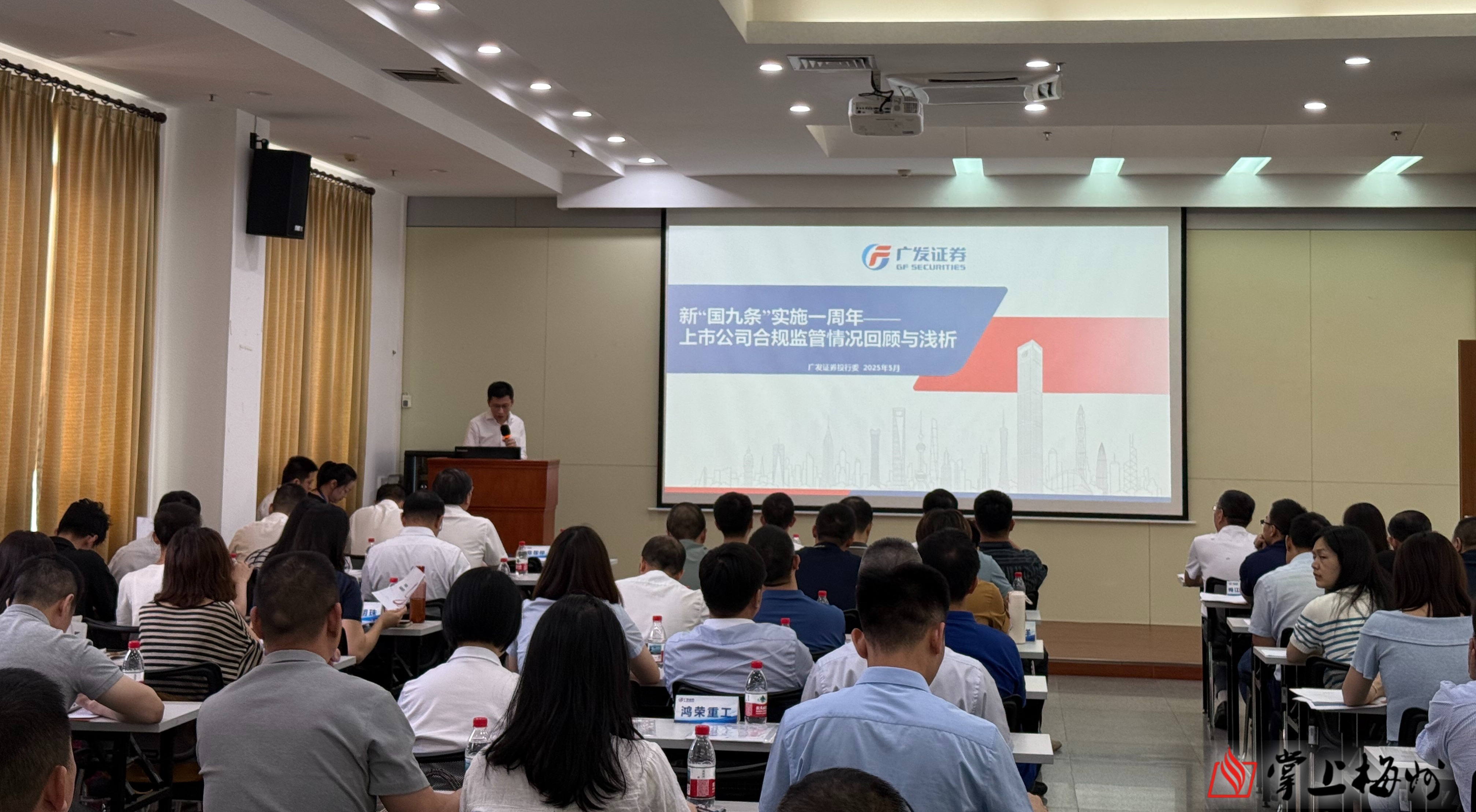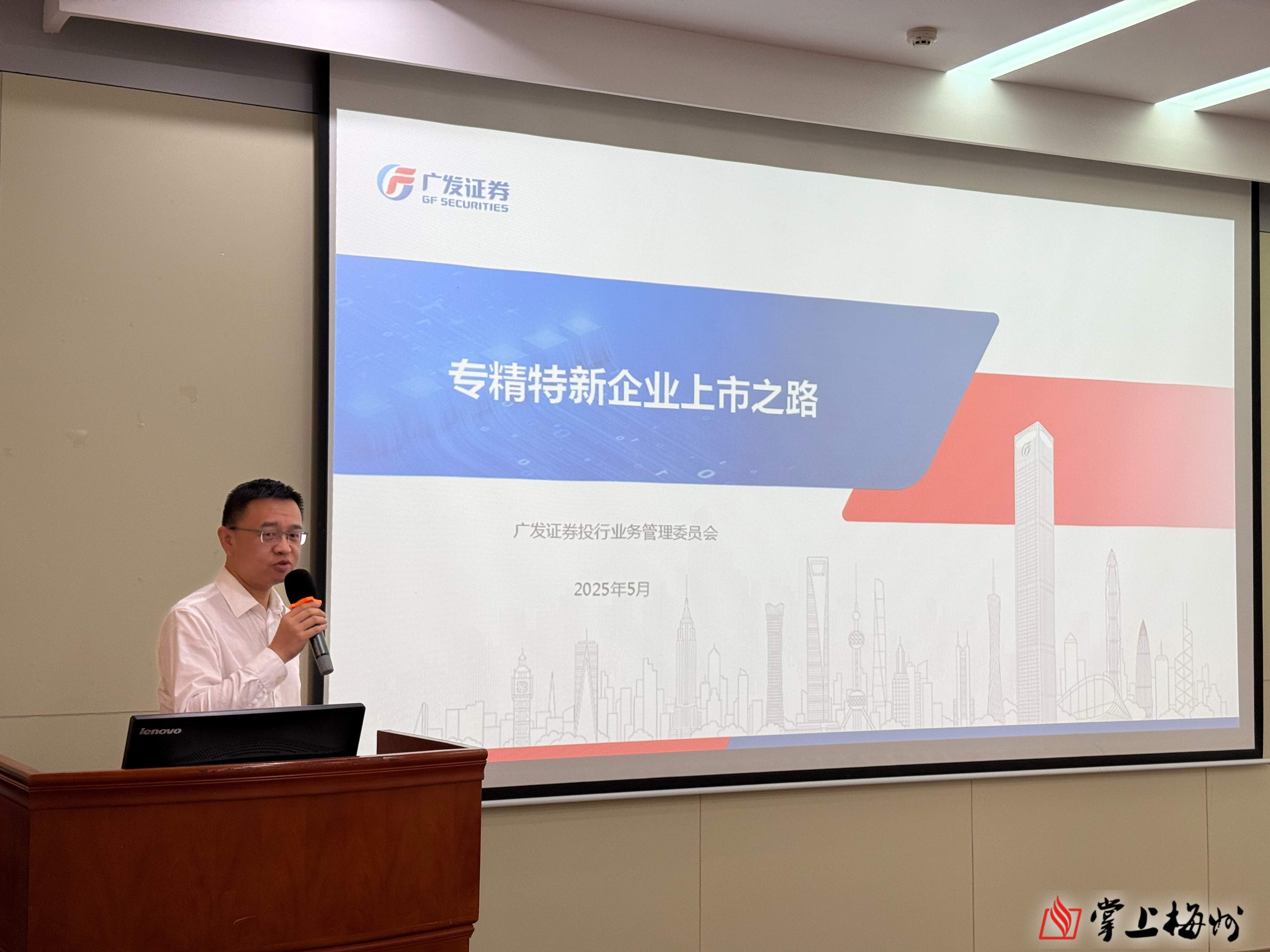 培训会由人民银行梅州市分行宣讲有关政策。而后广发证券投行华南二部负责人、执行董事但超和广发证券投行华南二部副总监陈琛桦进行授课。但超围绕专精特新企业上市之路展开分析,从国内资本市场动态、公开发行上市介绍、登陆资本市场关注要点三个方面展开分享,结合典型案例进行深刻剖析,进一步提高企业对多层次资本市场的认知度,促进企业上市工作精准对标。陈琛桦对新“国九条”实施一周年来上市公司合规监管情况进行了回顾与分析,介绍了近期上市公司合规监管形势,进一步深化我市上市公司及上市后备企业对资本市场新规则的理解和认识。