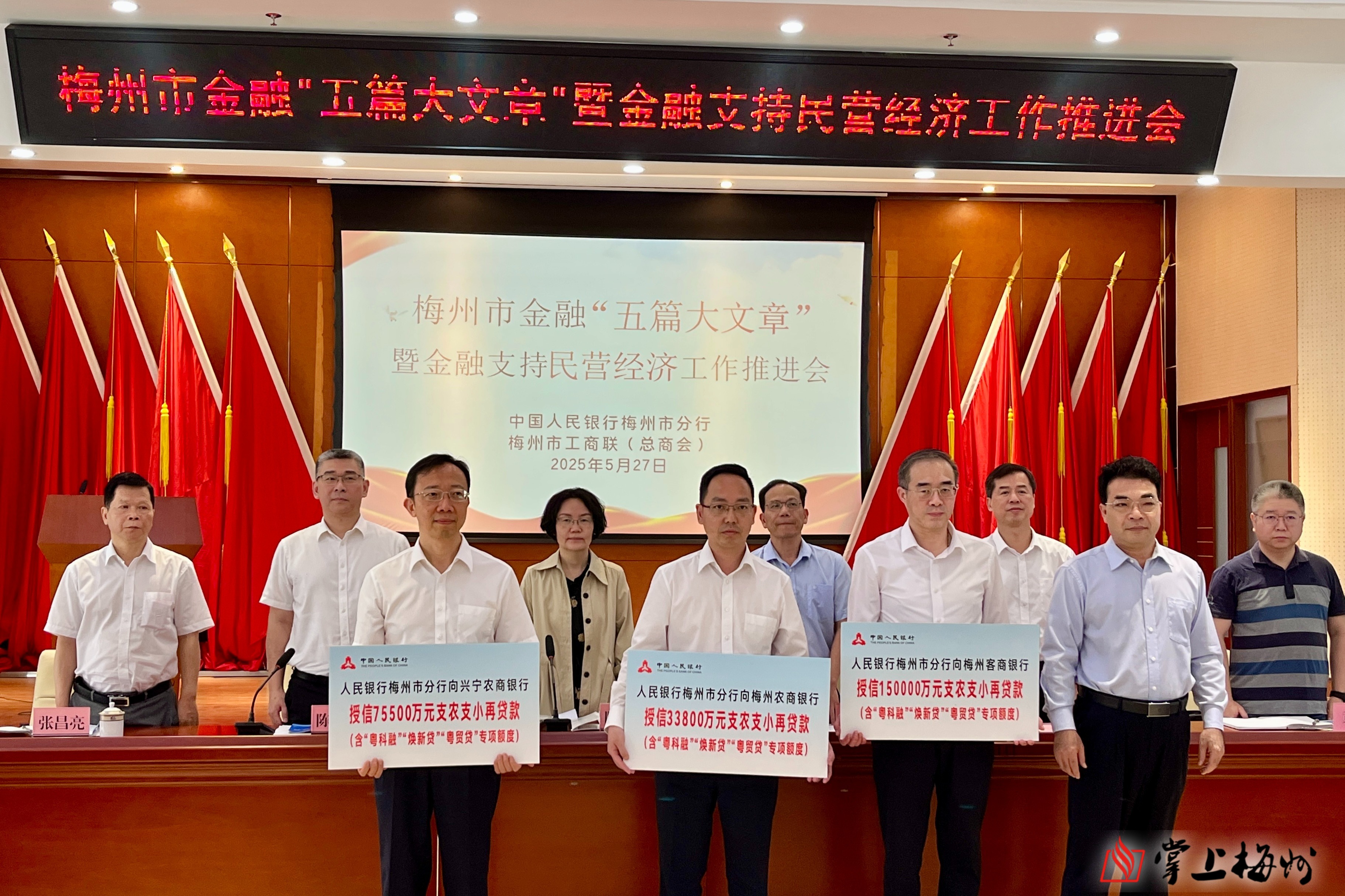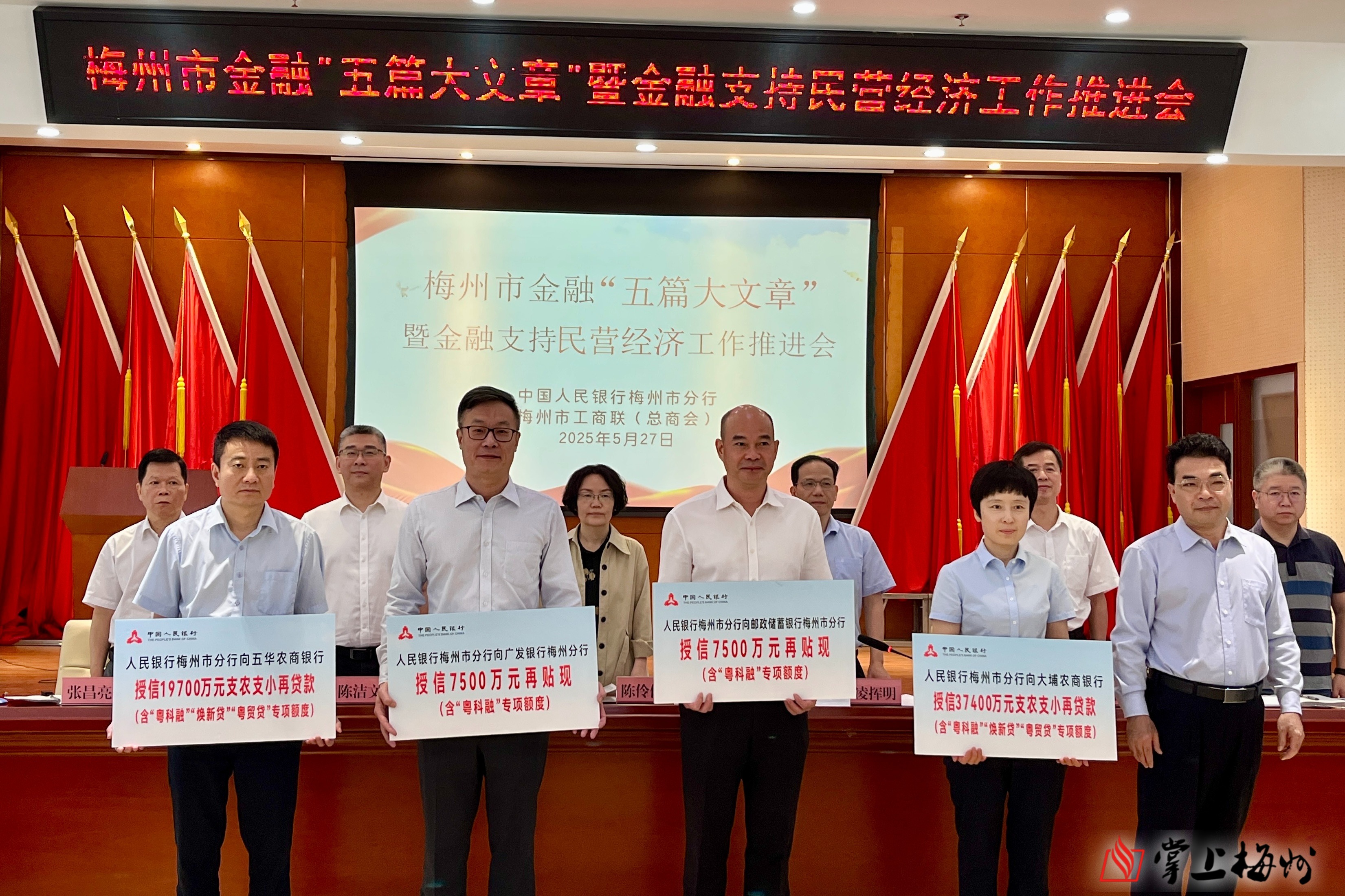 会议由人民银行梅州市分行、梅州市工商联共同主办。现场,农业银行梅州分行、建设银行梅州市分行、梅州农商银行有关负责同志分别介绍了金融“五篇大文章”重点领域有关工作经验,举行了再贷款再贴现授信、企业授信和政策宣讲、金融产品介绍。