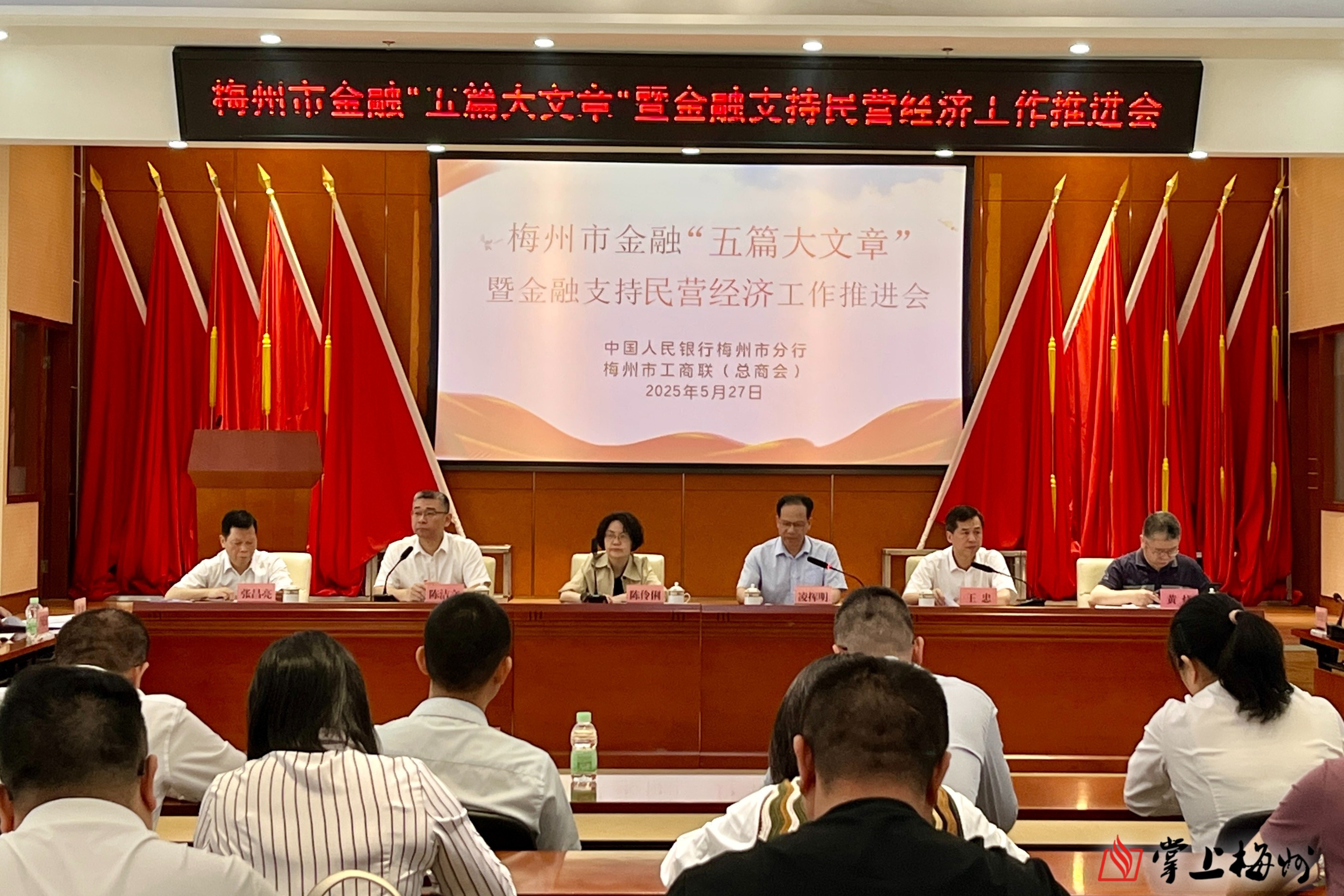 掌上梅州讯 5月27日,梅州市金融“五篇大文章”暨金融支持民营经济工作推进会在梅城召开,市政府副市长陈伶俐,人民银行梅州市分行行长陈洁文,市委统战部副部长、市工商联党组书记王忠出席会议并讲话。市政府副秘书长凌挥明主持会议。