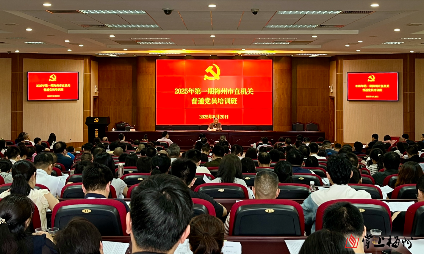 掌上梅州讯 6月20日上午,2025年第一期梅州市直机关普通党员培训班在市委党校开班。来自市直和中央、省属驻梅等单位的普通党员共300人参加培训。