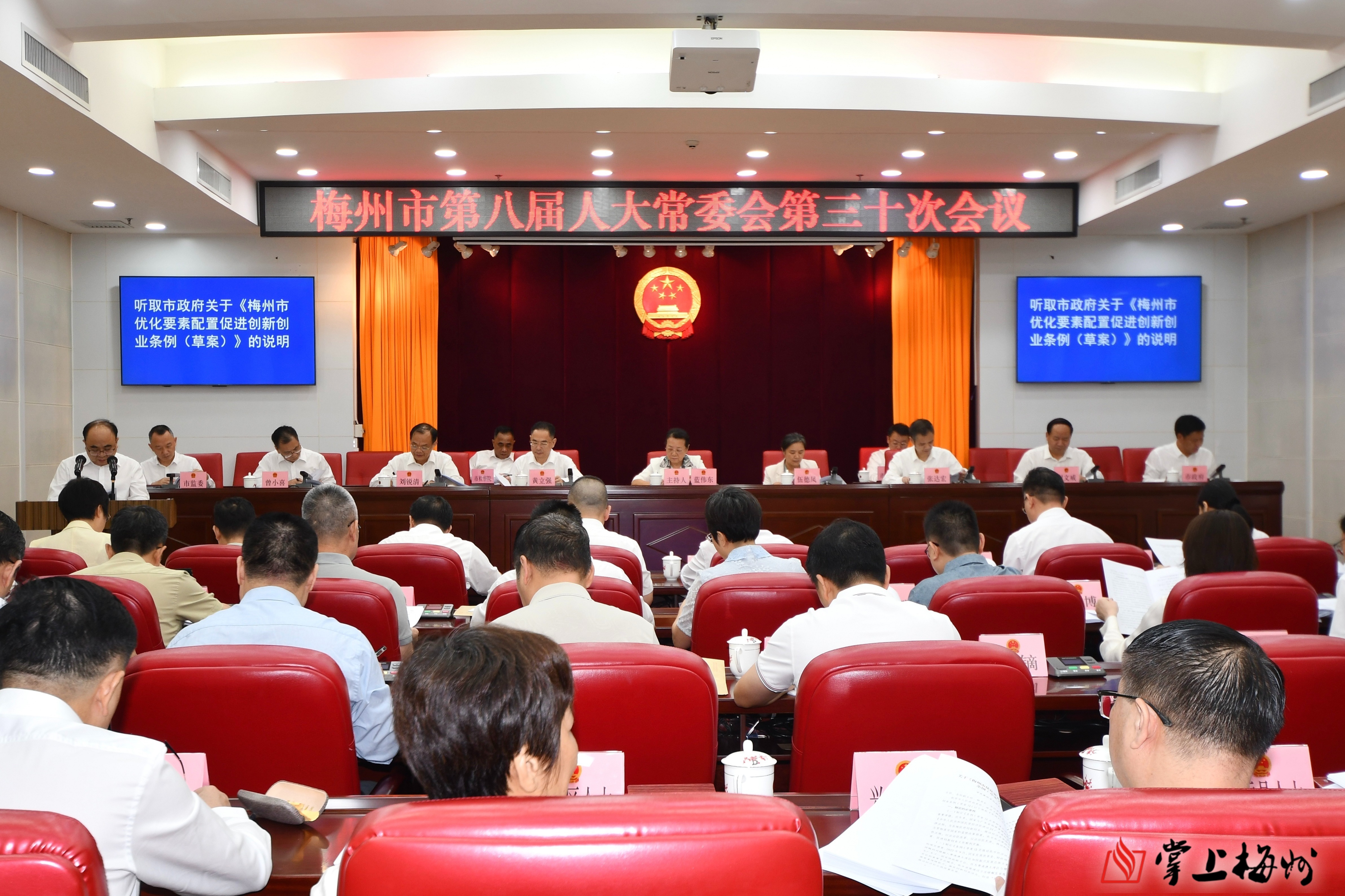 掌上梅州讯 7月30日上午,受市委书记、市人大常委会党组书记、主任马正勇委托,市人大常委会党组副书记、副主任蓝伟东主持召开市八届人大常委会第三十次会议。市人大常委会副主任伍德凤、黄立强、张达宏、刘锐清、谢文威,市人大常委会秘书长曾小喜及委员共35人出席会议。市委常委、市纪委书记、市监委主任蒋万军,市政府副市长胡学冬,市法院院长林秀雄以及市检察院负责同志列席会议。