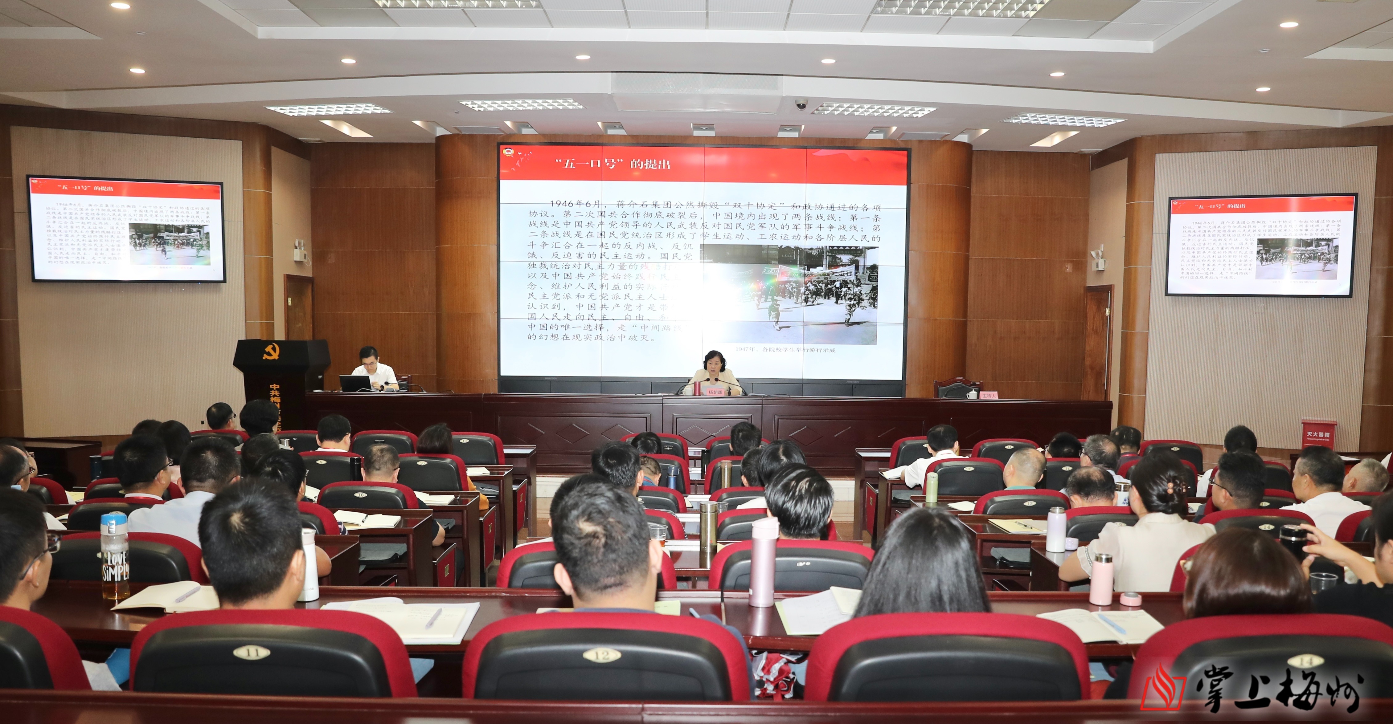 掌上梅州讯 9月22日,市政协党组书记、主席杨朝晖来到市委党校,以《知史明责共奋进 同心协力促发展——从光辉历程看新时代人民政协的使命担当》为题,为正在参加培训的全市县处级干部任职进修班和中青年干部培训二班学员作报告。
