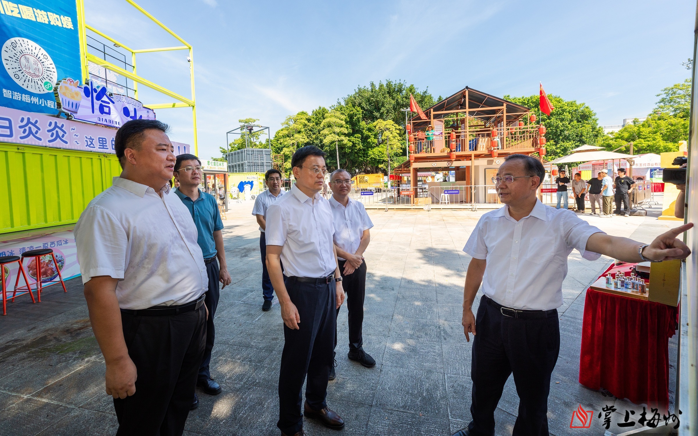 马正勇在院士广场检查并听取梅州米香酒文化周活动筹备及安全保障工作情况汇报。