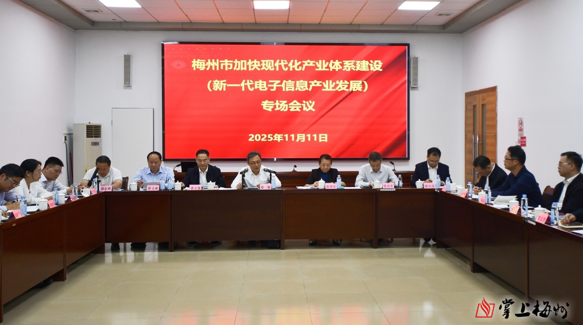 掌上梅州讯 11月11日,梅州市加快现代化产业体系建设(新一代电子信息产业发展)专场会议在梅州经济开发区召开。市委常委、副市长蒋鲲,市人大常委会党组副书记、副主任蓝伟东,市人大常委会副主任黄立强、张达宏、谢文威,市人大常委会秘书长曾小喜参会。