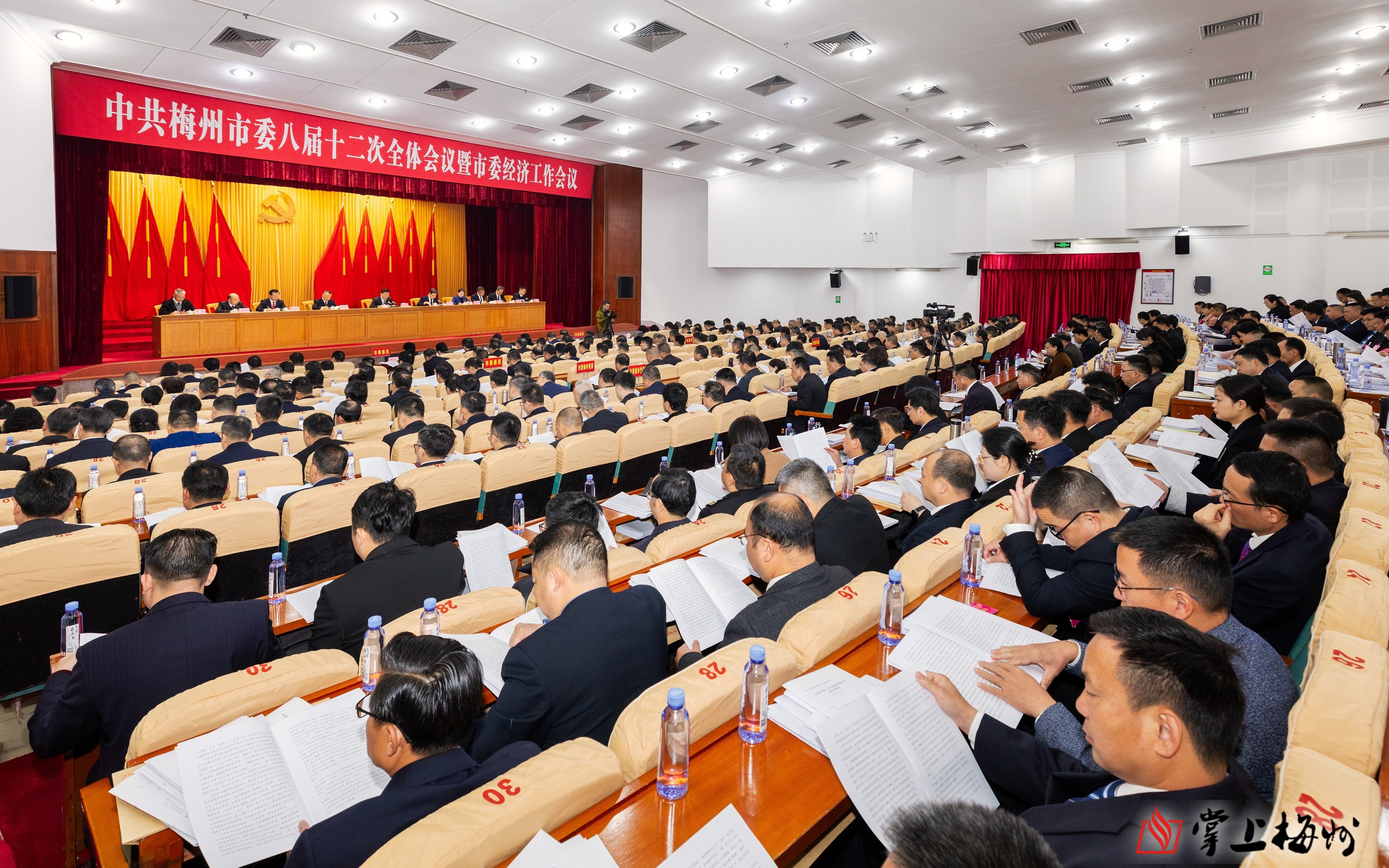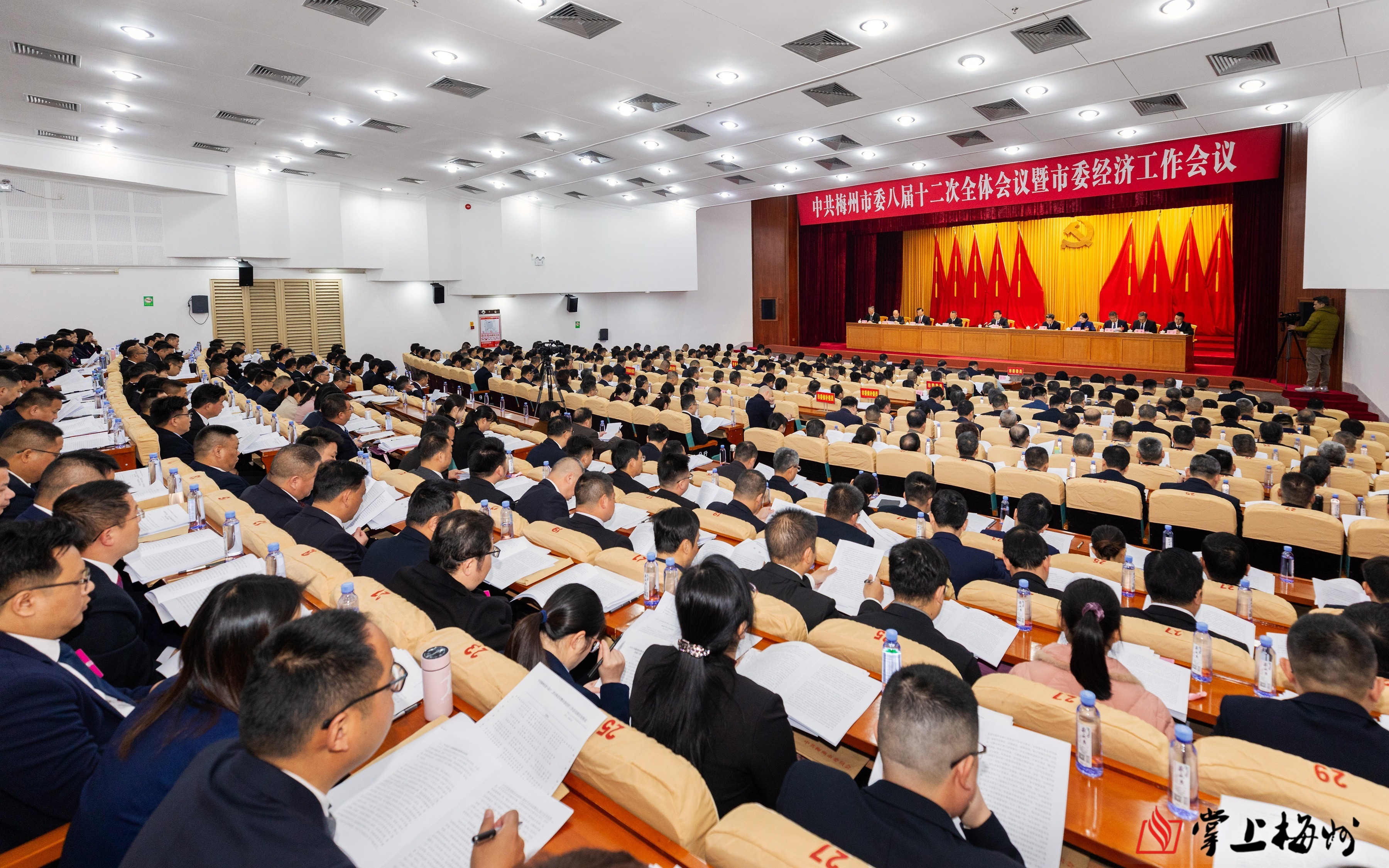 掌上梅州讯 13日,中国共产党梅州市第八届委员会第十二次全体会议暨市委经济工作会议在梅城召开。会议坚持以习近平新时代中国特色社会主义思想为指导,深入贯彻党的二十大和二十届历次全会以及中央经济工作会议精神,全面贯彻习近平总书记对广东系列重要讲话和重要指示精神,认真落实省委十三届七次、八次全会部署,总结2025年工作,谋划“十五五”时期我市经济社会发展,部署2026年工作,动员全市上下忠诚感恩、奋发图强,推动梅州发展再加快速度,全力开创梅州现代化建设新局面。市委常委会主持会议。市委书记马正勇代表市委常委会作报告,并就有关文件稿向全会作说明。市委副书记、市长王晖就经济工作作专题讲话。