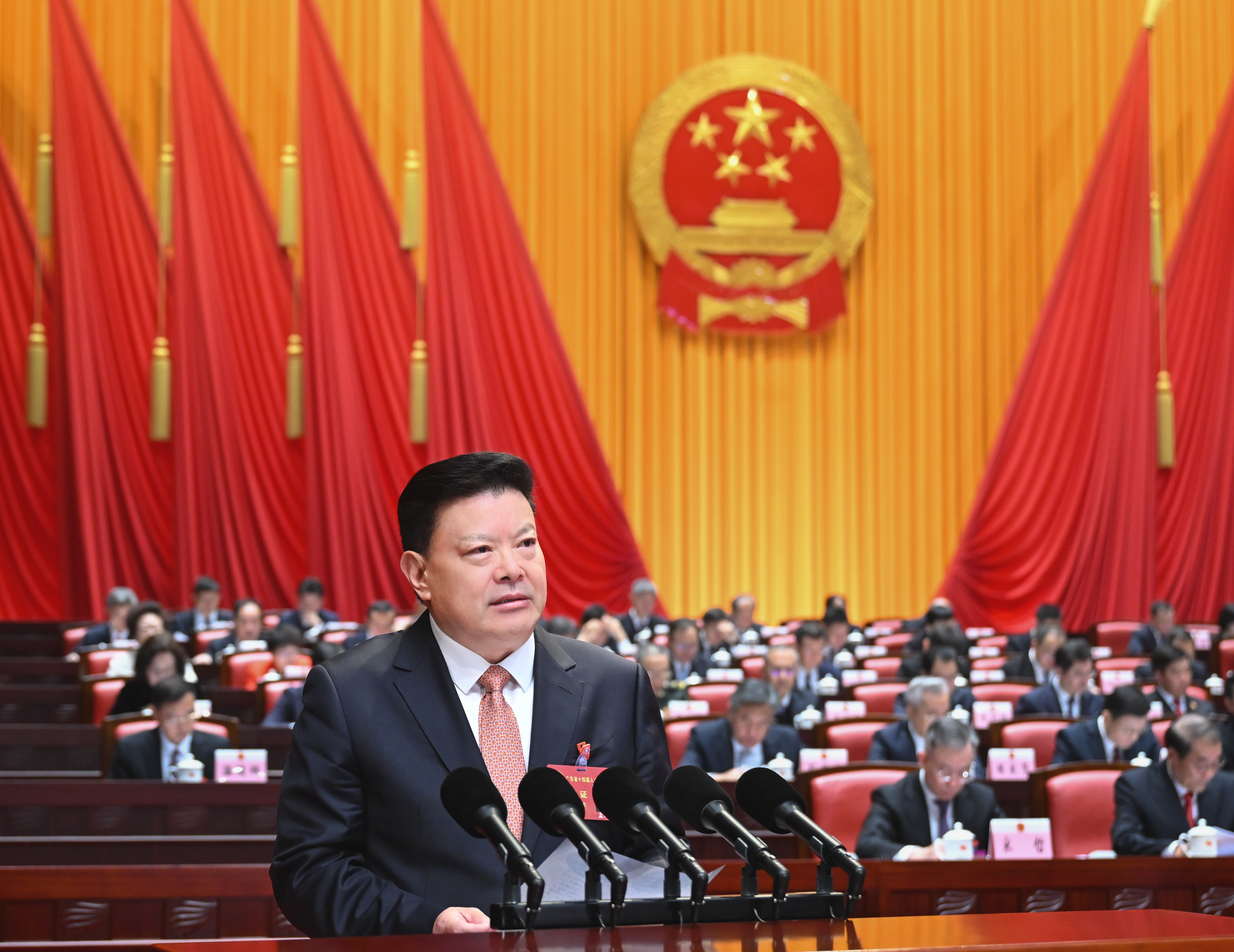 1月26日上午,广东省第十四届人民代表大会第五次会议在广州开幕。省长孟凡利向大会作政府工作报告。(南方日报记者 王辉 张冠军 张迪 梁钜聪 钟志辉 摄)