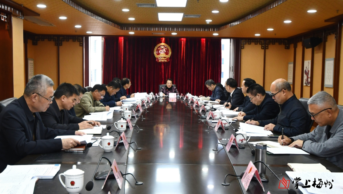 会议传达学习习近平总书记在中央政治局会议上、在中央政治局第二十四次集体学习时、在省部级主要领导干部学习贯彻党的二十届四中全会精神专题研讨班开班式上的重要讲话精神。会议强调,要把习近平总书记重要讲话精神,与习近平总书记在党的二十届四中全会上的重要讲话、关于“十五五”发展的系列重要论述紧密结合起来,与习近平总书记对广东系列重要讲话和重要指示精神贯通起来,一体学习领会,全面贯彻落实。要旗帜鲜明讲政治,发挥好市人大常委会党组把方向、管大局、保落实重要作用,始终把牢人大工作正确政治方向。要深刻把握“十五五”时期梅州人大工作的职责使命,围绕落实省委“1310”具体部署和市委工作安排,聚焦高质量发展首要任务,以实干作风谋划推动人大工作,助推梅州开创现代化建设新局面。