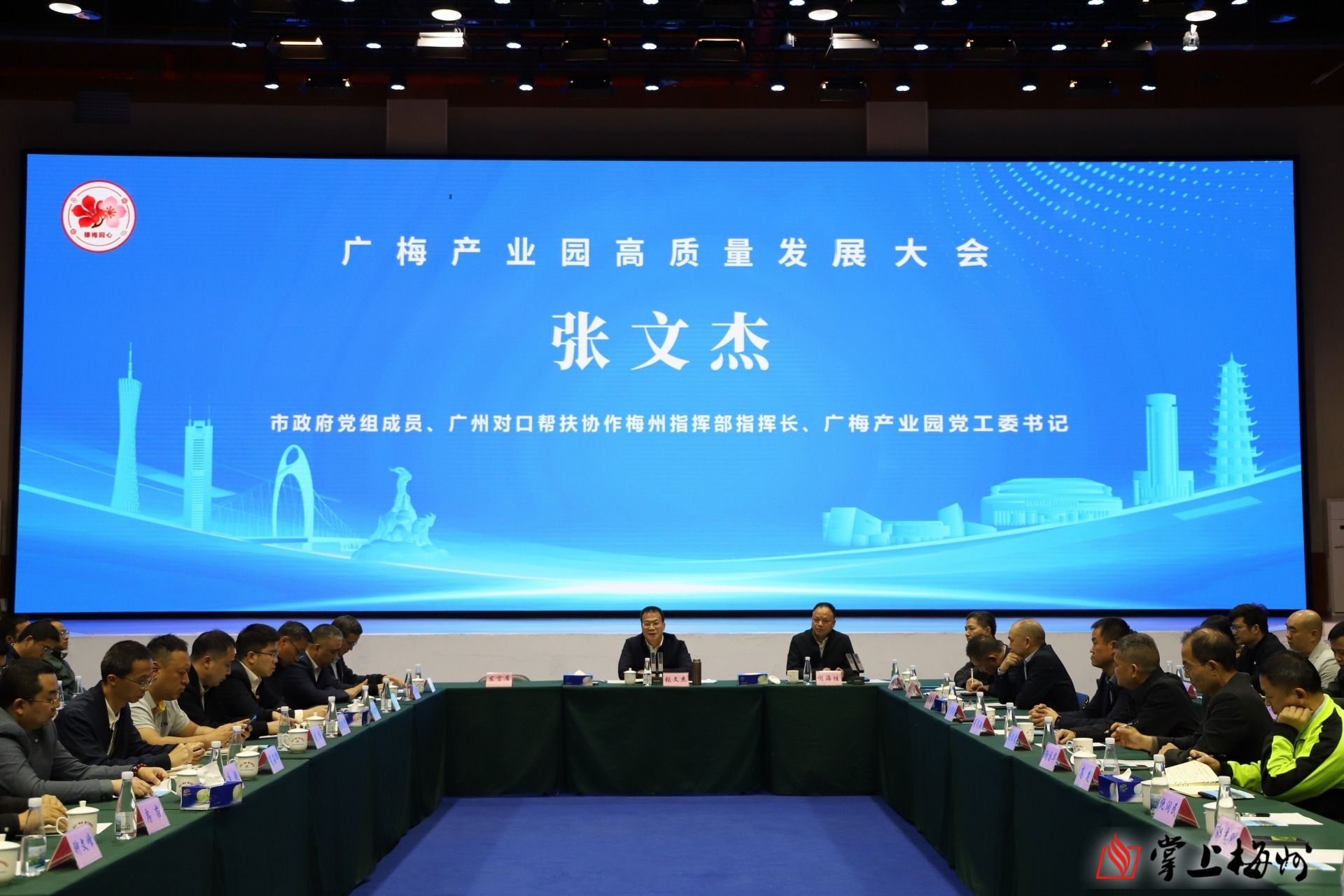 掌上梅州讯 3月3日下午,广梅产业园高质量发展大会在广梅产业园绿创中心召开。市政府党组成员、广州对口帮扶协作梅州指挥部指挥长、广梅产业园党工委书记张文杰出席会议并讲话。大会由广州对口帮扶协作梅州指挥部副指挥长、广梅产业园党工委副书记、管委会主任谢海佳主持。