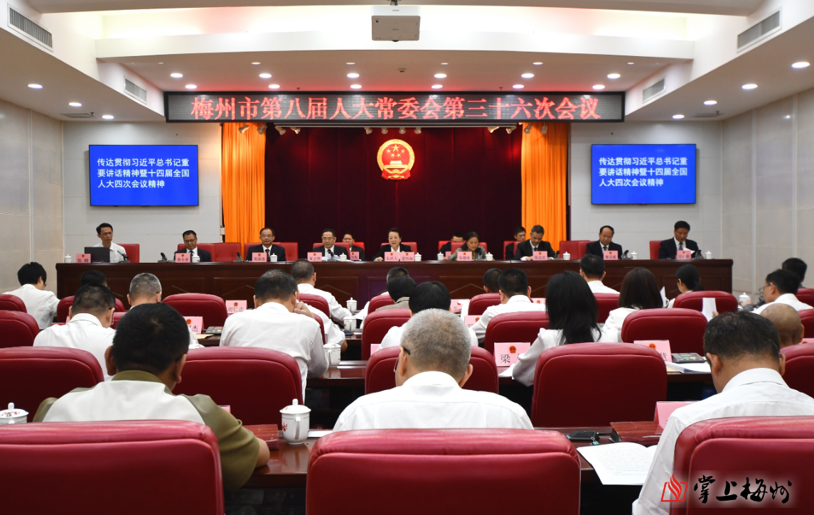 掌上梅州讯 3月27日,受市委书记、市人大常委会党组书记、主任马正勇委托,市人大常委会党组副书记、副主任蓝伟东主持召开市八届人大常委会第三十六次会议。市人大常委会副主任伍德凤、黄立强、张达宏、刘锐清、谢文威,市人大常委会秘书长曾小喜及委员共36人出席会议。市政府副市长胡学冬,市检察院检察长吴文志,市监委、市法院负责同志列席会议。