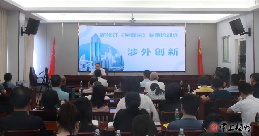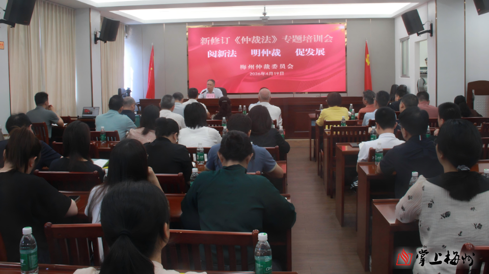 掌上梅州讯 4月19日,在我国首个“全民阅读活动周”启动之际,梅州仲裁委员会举办新修订《中华人民共和国仲裁法》专题培训会。培训会积极响应“共促全民阅读,共建书香社会”号召,以“阅新法、明仲裁、促发展”为主题,将全民阅读的“书香”与法治建设的“法香”深度融合,推动新仲裁法落地实施、提升仲裁服务质效。